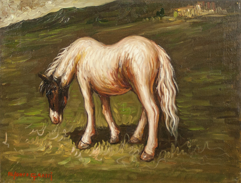 lotto unico di n. 2 opere: 170 a ALFONSO GRASSI olio su tela cm 30 x 40 firmato in basso a sinistra; certificato al retro 170 b GIULIANO TROMBINI Ferrara 1953 serigrafia su carta cm 70 x 100