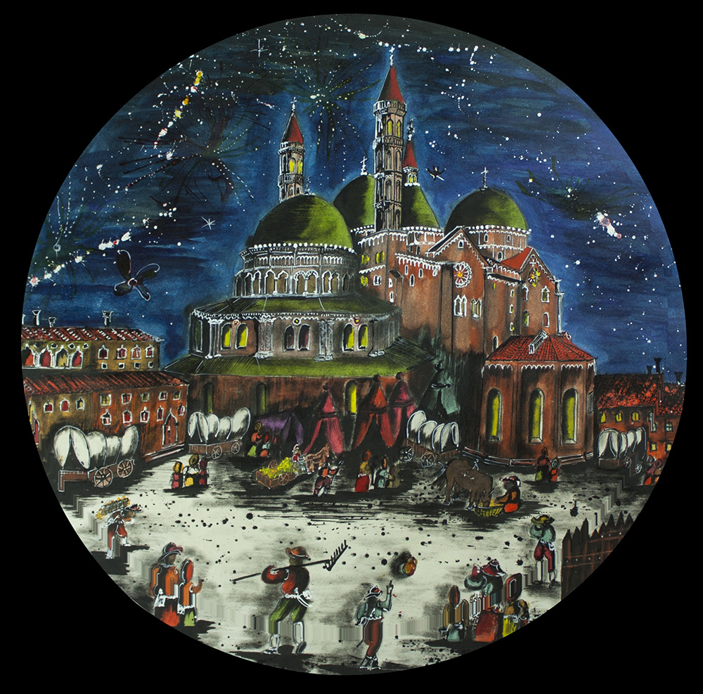 Lot 203 | ROMOLÒ Tempera su cartoncino applicato su legno anno 1976 Ø 55 cm firma in...