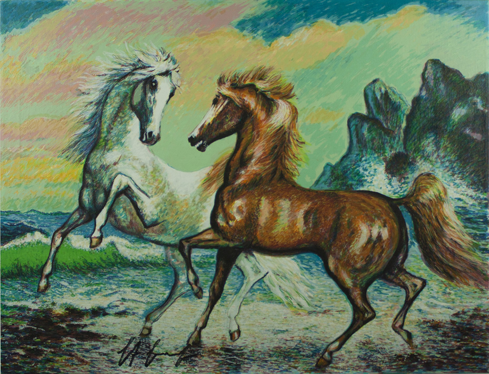 GIOVAN FRANCESCO GONZAGA Milano 1921 – 2007 litografia su tela es. n. 14/100 59 x 78 cm firmata in basso a sinistra e numerata al retro