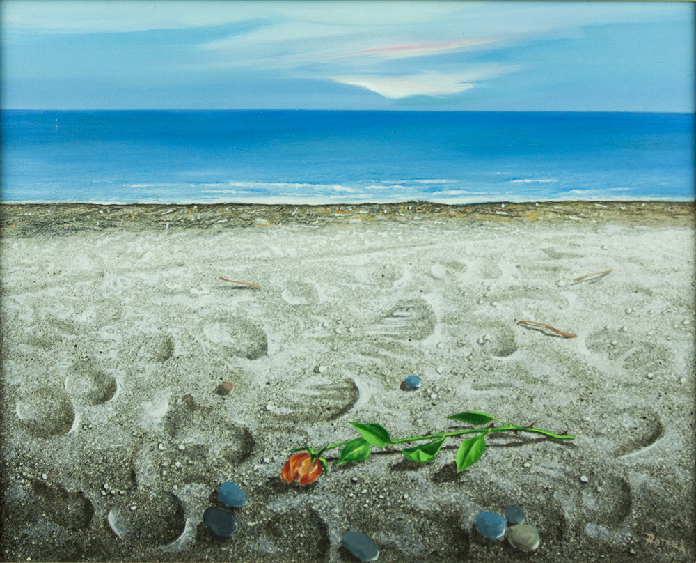GIOVAN BATTISTA ROTELLA Gimigliano 1947 " Rosa e spiaggia " olio su tela 40 x 50 cm firmato in basso a destra