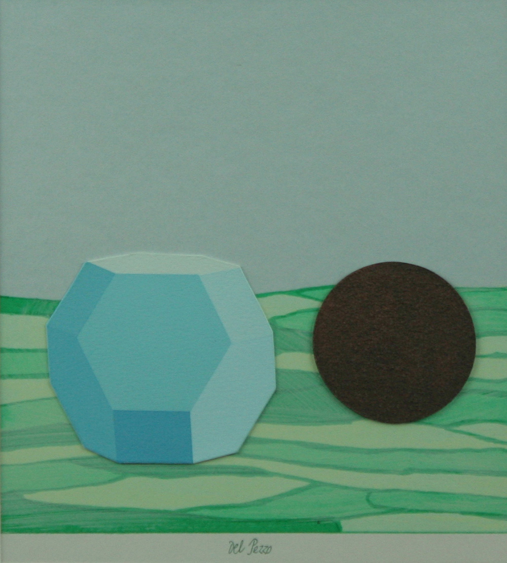 LUCIO DEL PEZZO Napoli 1933 " Geometrie " acquerello e collage su cartoncino 23,5 x 21,5 cm firmato in basso al centro