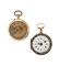 PATRON A Genève Orologio da tasca da donna in oro 18K Epoca fine sec. XVIII Movimento con carica a chiavetta Quadrante in smalto bianco con cifre romane e arabe Unito a un orologio in oro 18K con movimento con carica remontoir, scappamento a cilindo, epoca metà sec. XIX Misure diverse PATRON A Genève Lady's 18K gold pocket watch Late 18th century Key-wind movement White dial with Roman numerals With another 18K gold pocket watch