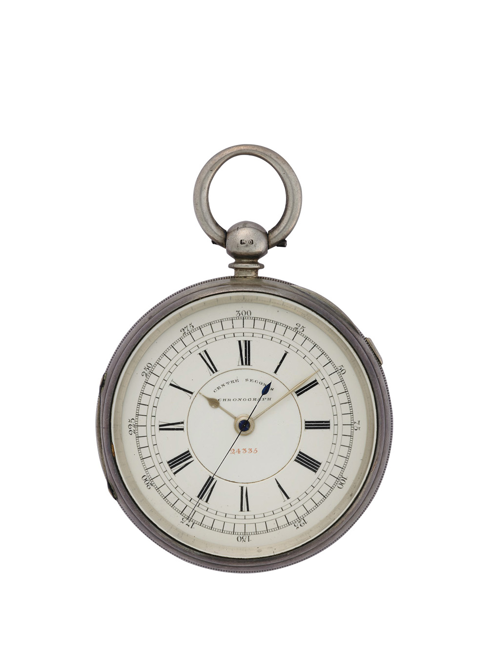 E. WISE MANCHESTER, 24335 Orologio da tasca da uomo in argento Epoca fine sec. XIX, inizio sec. XX Movimento firmato con carica a chiavetta Quadrante in smalto bianco con cifre romane e fascia cronografica Movimento n. 24335 Diam. mm 59 circa E. WISE MANCHESTER, 24335 Gent's silver pocket watch Late 19th century, early 20th century Movement signed Key-wind movement White enamel dial with Roman numerals Diam. mm 59 circa