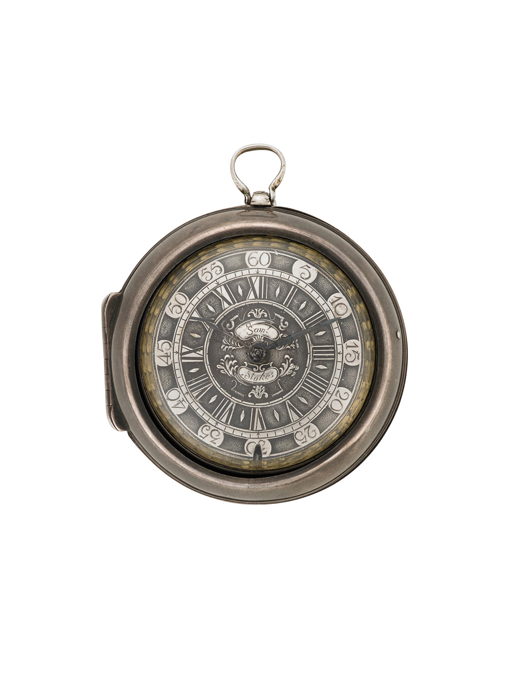SAM STOKES Orologio da tasca da uomo in argento, con controcassa Epoca metà sec. XVIII Movimento e quadrante firmati Movimento con carica a chiavetta, scappamento a verga Quadrante in argento con numeri arabi e cifre romane Diam. mm 58 SAM STOKES Gent's silver double case pocket watch Mid 18th century Dial and movement signed Key-wind movement Silver dial, Roman and Arabic numerals Diam. mm 58