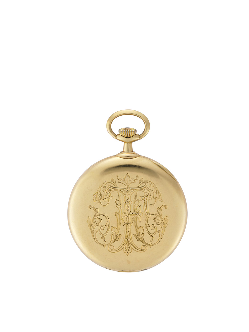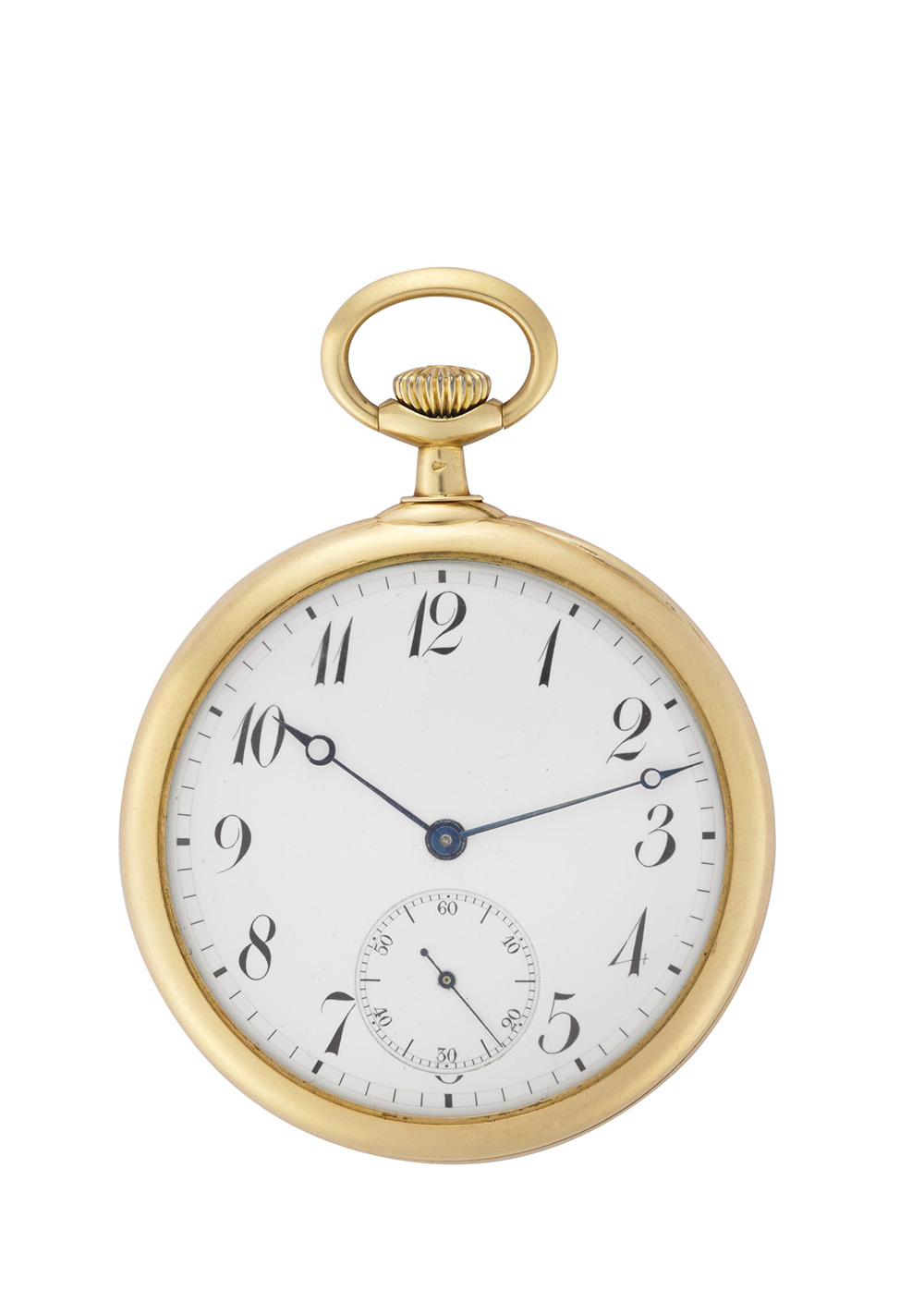 ANONIMO Orologio da tasca da uomo in oro 18K Epoca inizio sec. XIX Movimento con carica remontoir Quadrante in smalto bianco con numeri arabi, quadrantino ausiliario per i secondi alle ore 6 Cassa. 25771 Diam. 51,5 ANONYMOUS Gent's 18K gold pocket watch Early 19th century Manual wind movement White enamel dial with Roman numerals, auxiliary dial Diam. mm 51,5