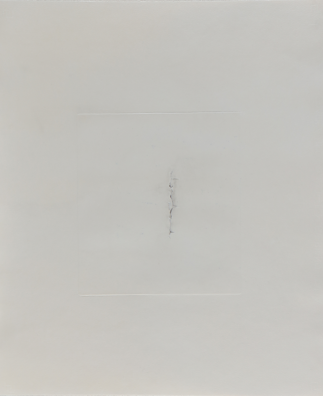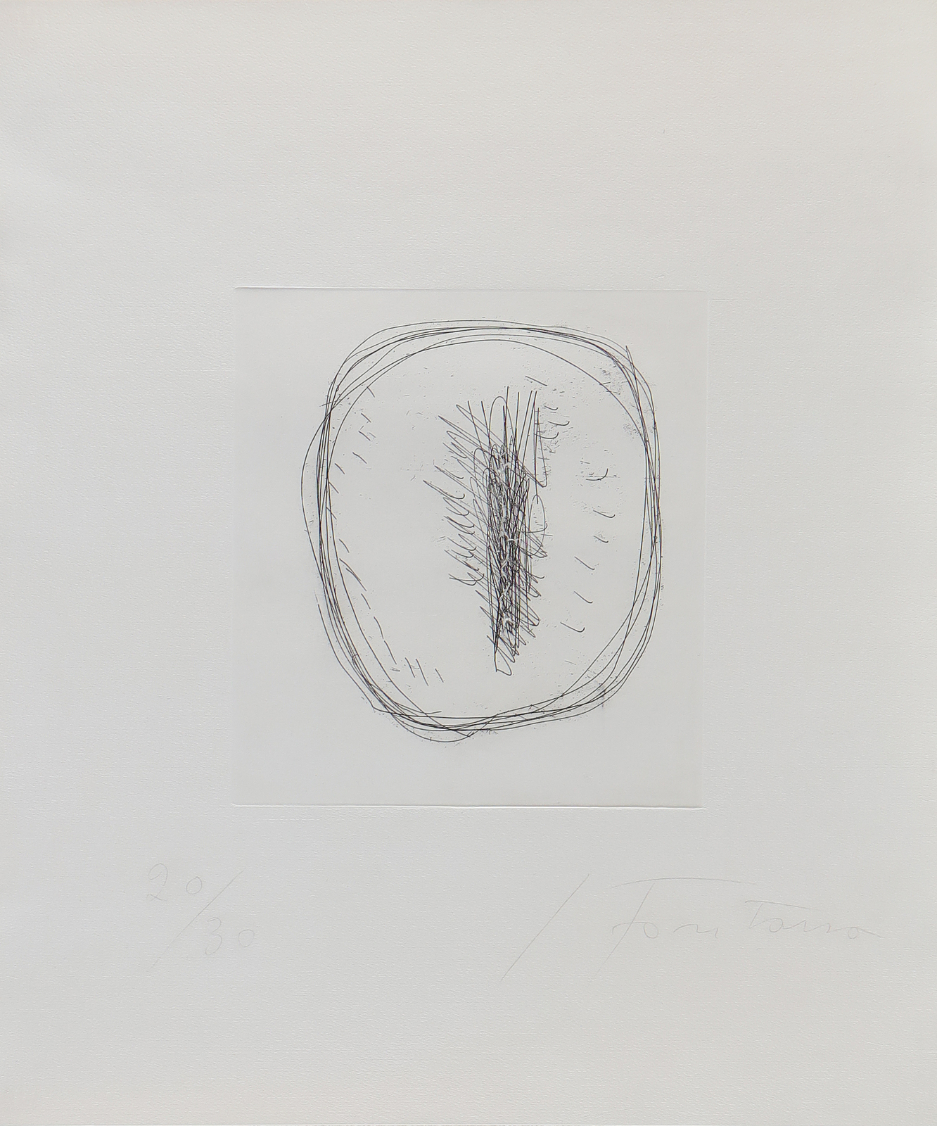 FONTANA LUCIO (1899 - 1960) Concetto spaziale. Etching and incision. Cm 50,40 x 59,80. Full Edition: 30; number 20. 1960/63. Signature and edition lower right in pencil. On Fabriano paper (watermark on the right margin). Sheet size: 26,7x24,2 cm. Publications: Harry Ruhé & Camillo Rigo, Lucio Fontana, graphics, multiples and more ..., Tuja Books, 2006, p.22.. Cornice presente