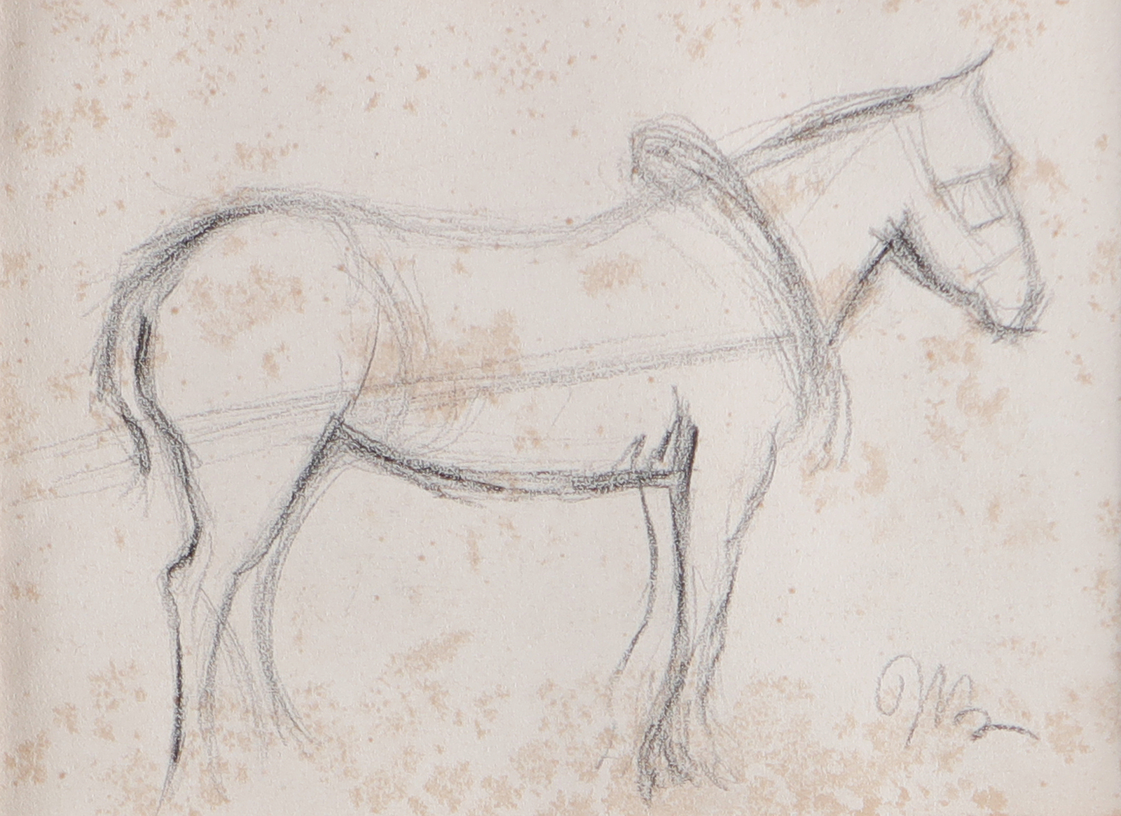 BOCCIONI UMBERTO (1882 - 1916) Horse. 1906. Pencil on paper. Cm 13,50 x 19,00. Monogram UB bottom right. Maurizio Calvesi autenthicity certificate on photo. Pubblications: Maurizio Calvesi - Albreto Dambruoso, Catalogo Generale delle opere di Umberto Boccioni, Allemandi editore, pag. 525, n.1019. Provenance: Casa D'aste Porro & C., 2016 November 16th, lot n.29; Private collection, Brescia.
