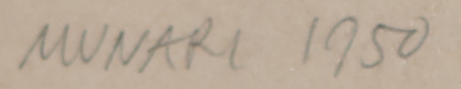 MUNARI BRUNO (1907 - 1998) Senza titolo. 1950. Tecnica mista su carta. Cm 50,00 x 35,00. Firma e anno a matita in basso a destra. Publicazioni: Catalogo Generale, Electa, pag.45. Cornice presente