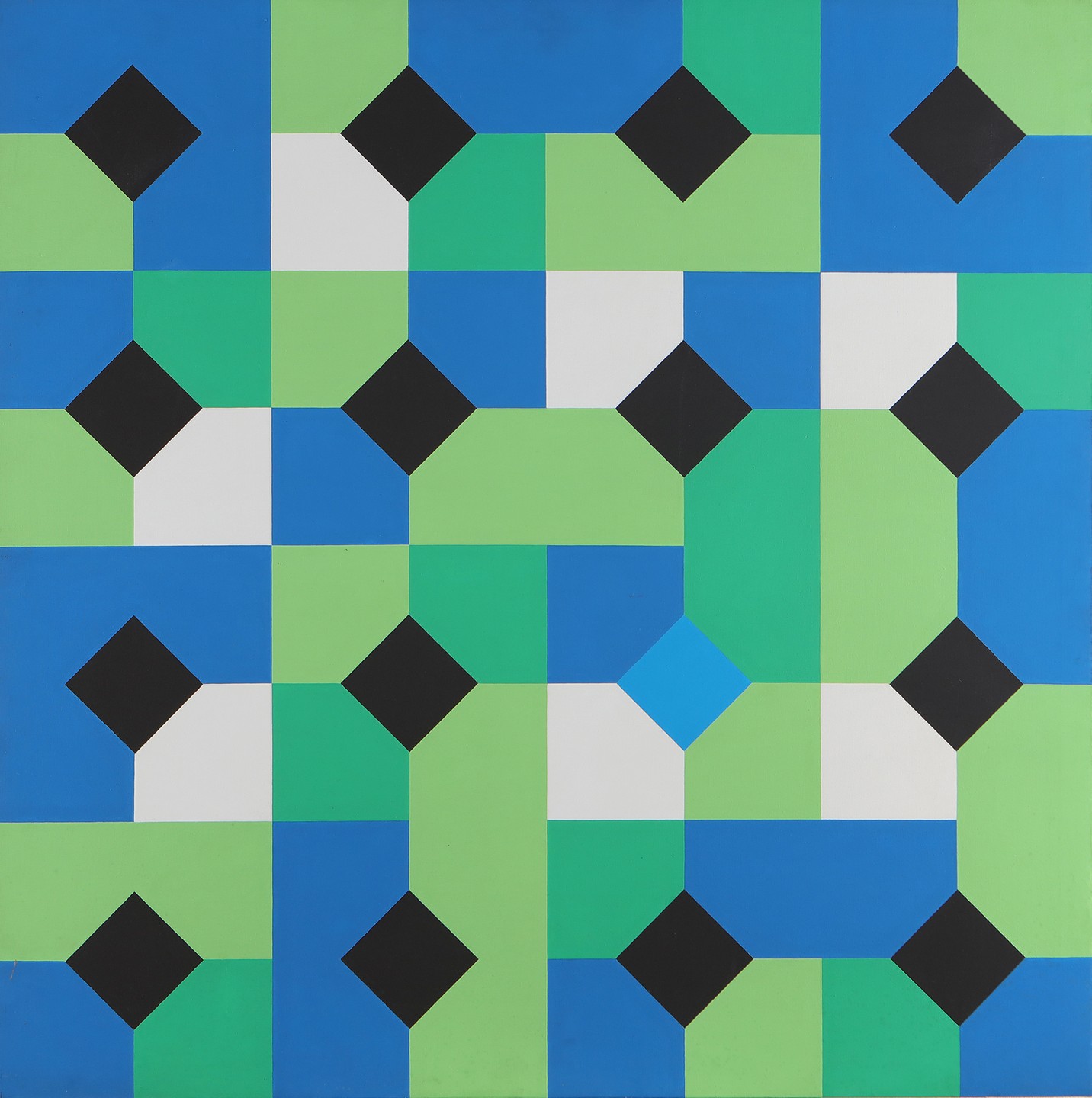 MUNARI BRUNO (1907 - 1998) Colors in the Peano curve. 1987. Acrylic on canvas. Cm 80,00 x 80,00. Signature and year at the back. Publication: Luca Beatrice, Bruno Munari positive negative and other small and big stories, catalog ofnthe axhibition, from 28/10/2016 to 12/18/2016, at the gallery Res Publica, the Democratic Art Gallery, Venaria Reale, Turin.