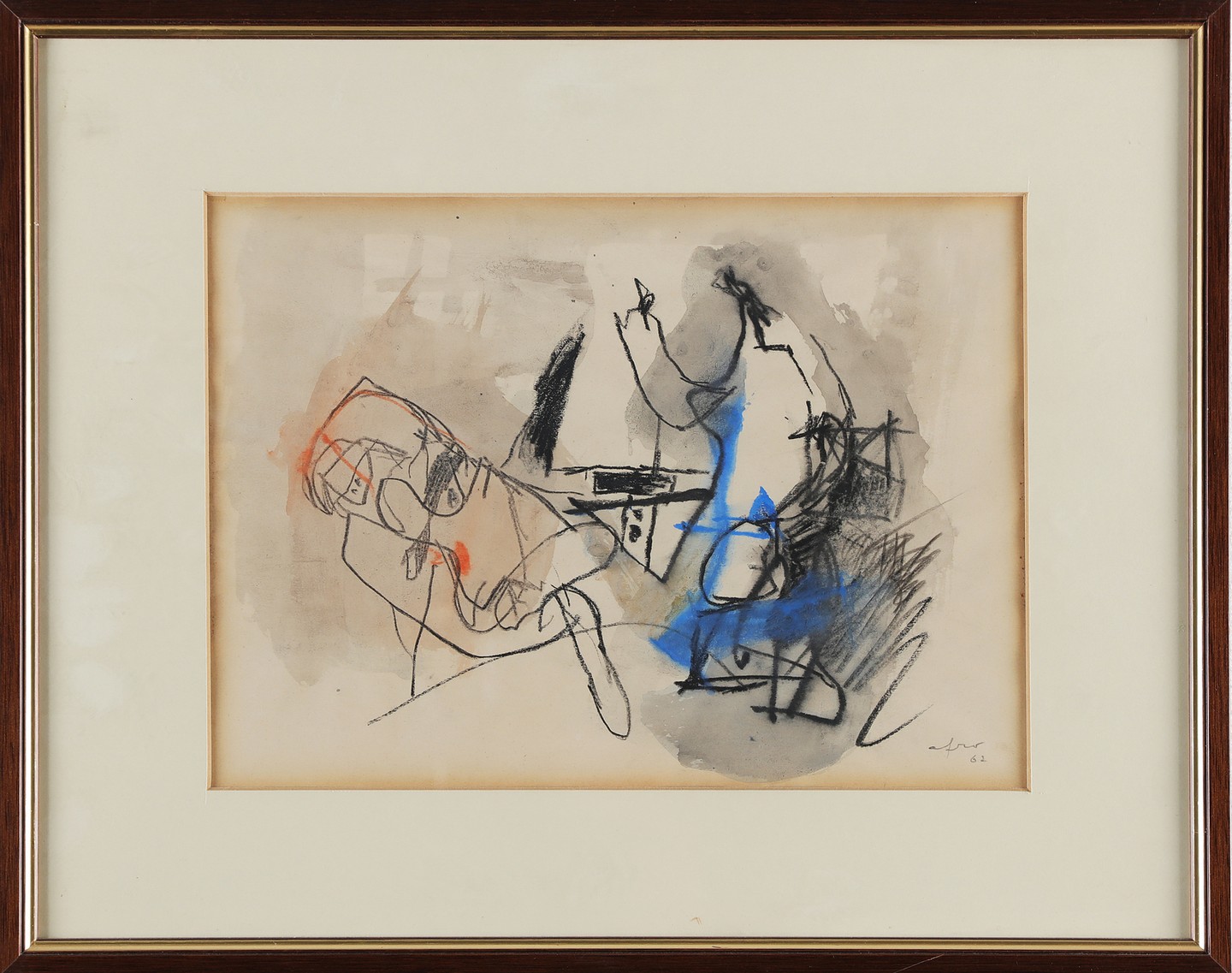 BASALADELLA AFRO (1912 - 1976) Senza titolo. 1962. Tecnica mista su carta. Cm 32,00 x 24,00. Firma e anno in basso a destra. Opera registrata presso l'archivio Afro, Roma, come da documentazione fotografica allegata all'opera riportante il relativo numero d'inventario. Pubblicazioni: Luciano Caramel, Afro, Antologica 1950-1975, De Agostini Arte & Cultura, catalogo della mostra personale tenuta presso la galleria Poleschi Arte, Milano, dal 26 Ottobre al 5 Dicembre 2000, pag.66.