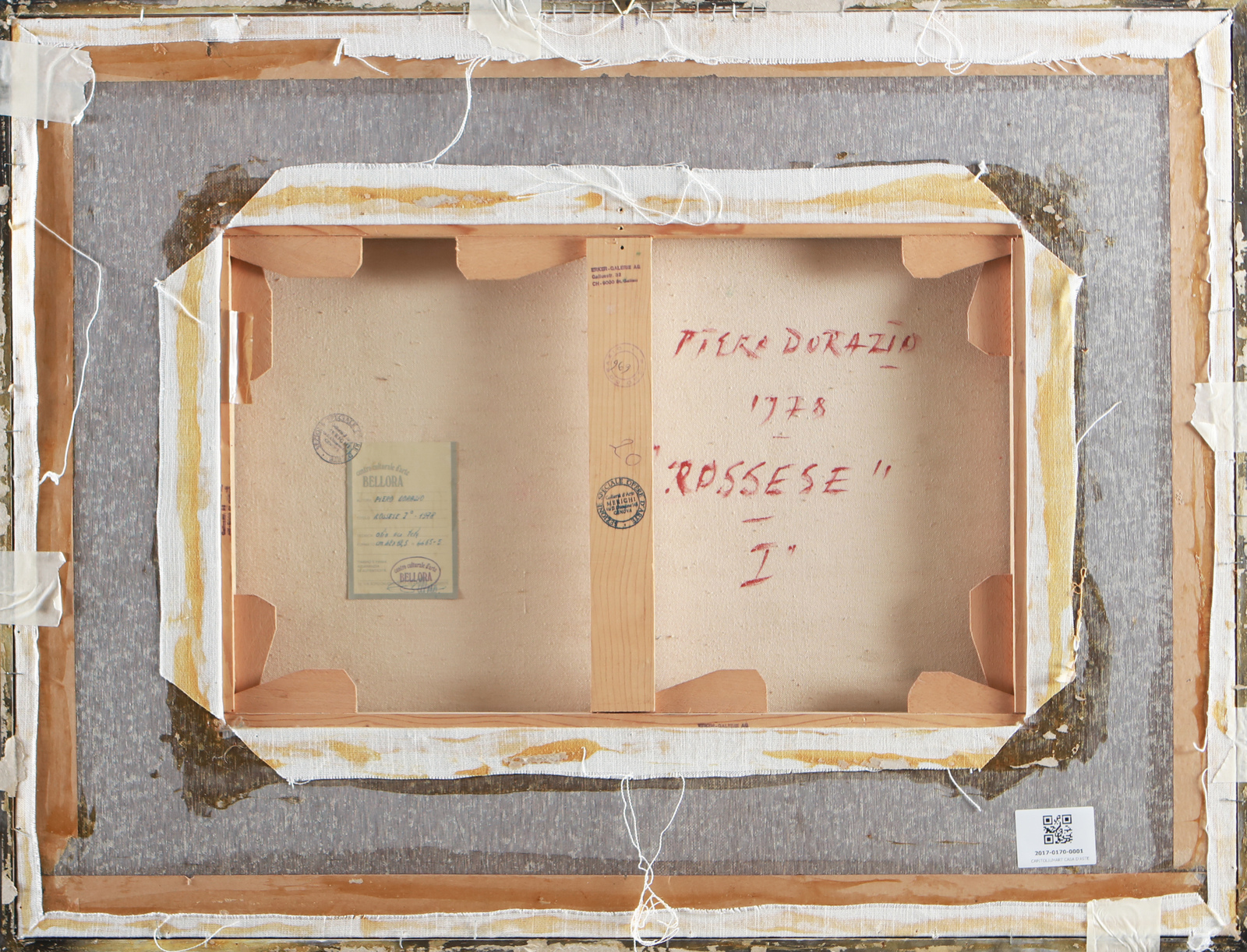 DORAZIO PIERO (1927 - 2005) Rossese I. 1978. Oil on canvas . Cm 66,00 x 42,50. Title, signature and year at the back. Provenance: Bellora Gallery, Milan (label at the back); Merighi Gallery, Genua (label at the back).. Cornice presente