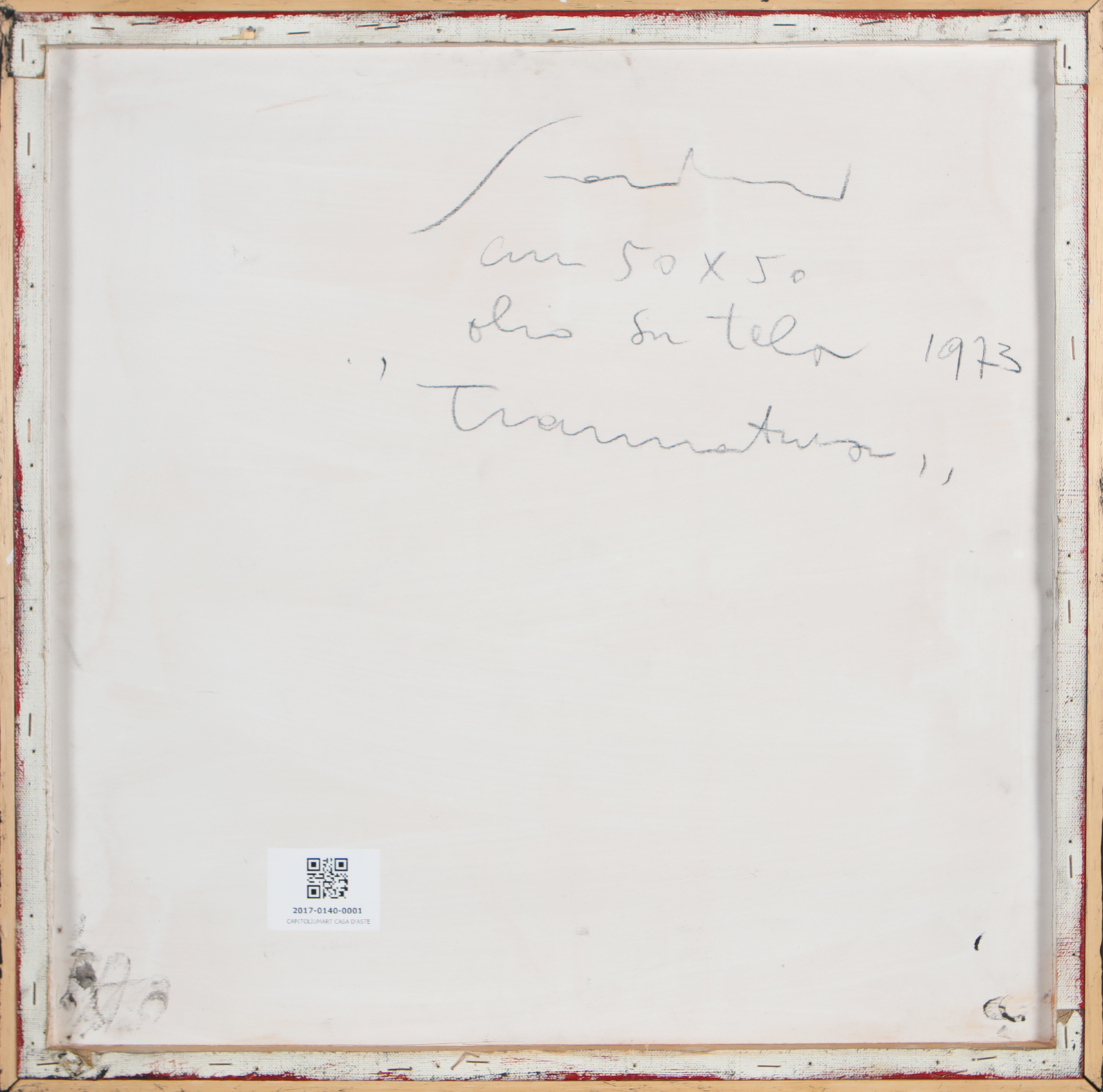 SCANAVINO EMILIO (1922 - 1986) Tramatura. . 1973. Olio su tela tamburata. Cm 50,00 x 50,00. Firma in basso a destra. Al retro firma, titolo e anno. Pubblicazione: a cura di Giorgina Graglia Scanavino e Carlo Pirovano, Scanavino Catalogo Ragionato Volume Secondo, Ed. Electa, Milano 2000, p. 671 scheda 45. Il catalogo presenta un errore di dicitura, viene datato 1977, verrà consegnata copia della mail dell'Archivio Scanavino dove viene segnalato tale errore. Cornice presente