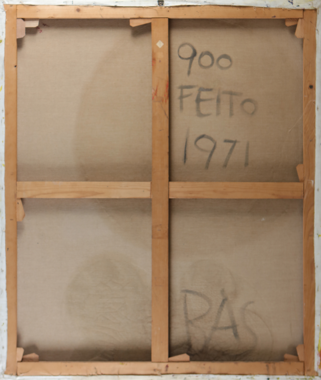 FEITO LUIS (n. 1929) 900. 1971. Oil on canvas . Cm 110,00 x 130,00. Title, signature and year at the back. Provenance: Beppe Bonetti astist's collection; Private collection, Rome. Cornice presente