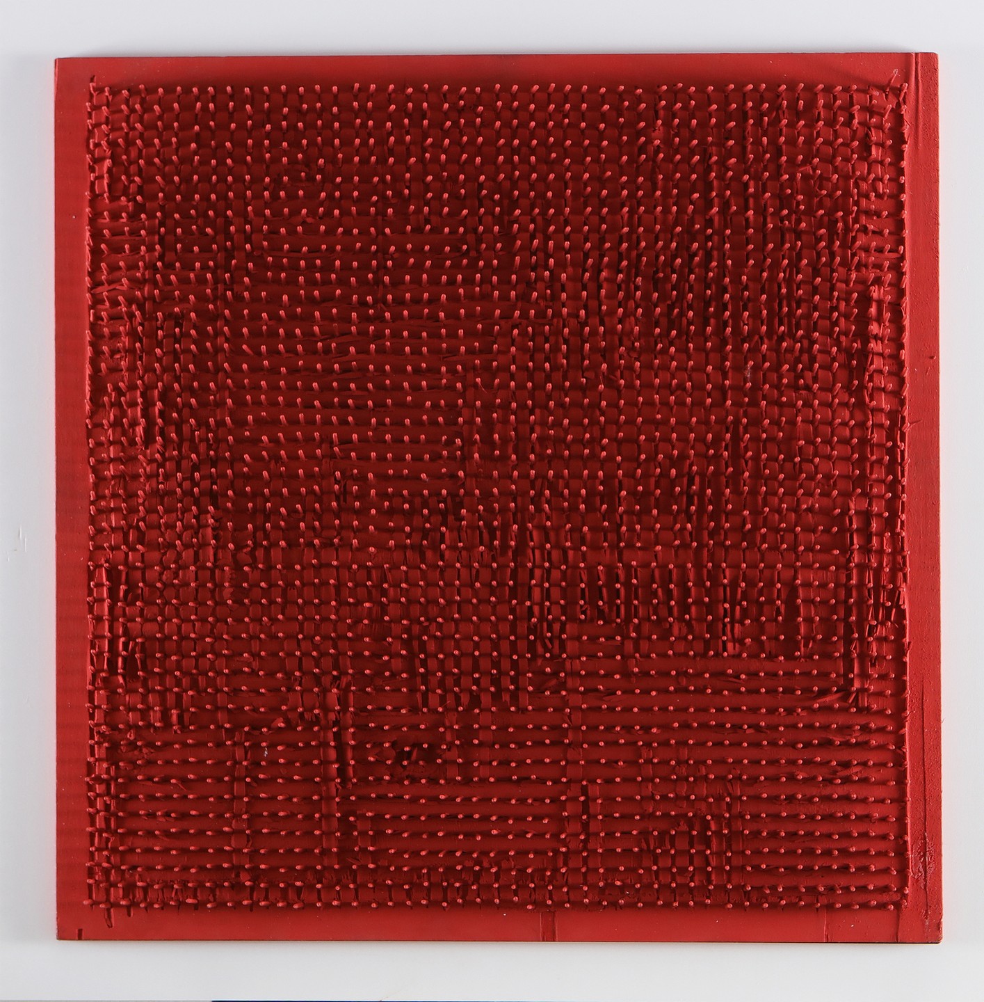 AUBERTIN BERNARD (1934 - 2015) Tableau Clous. 1968. Nails on panel. Cm 50,00 x 50,00. Signature and year at the back. Bernard Aubertin Archives autenthicity certificate on photo.Artist's autenthicity certificate on photo. Cornice presente
