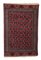 Tappeto a fondo rosso, decorato a motivi geometrici nei toni del bianco e del nero, cm 188x124