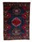 Tappeto a fondo blu, decorato a motivi geometrici nei toni del rosso blu e celeste , cm 147x105