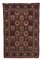 Tappeto a fondo rosso, decorato con riquadri nei toni del bianco, celeste e nero cm 154x104
