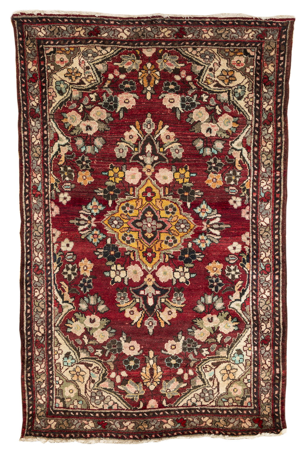 Tappeto Hamadan a fondo rosso, decorato con medaglione centrale nei toni...