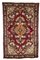 Tappeto Hamadan a fondo rosso, decorato con medaglione centrale nei toni bianco, azzurro e nero, cm 200x127