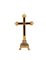 Croce reliquiario in legno dorato, poggiante su piedistallo squadrato...