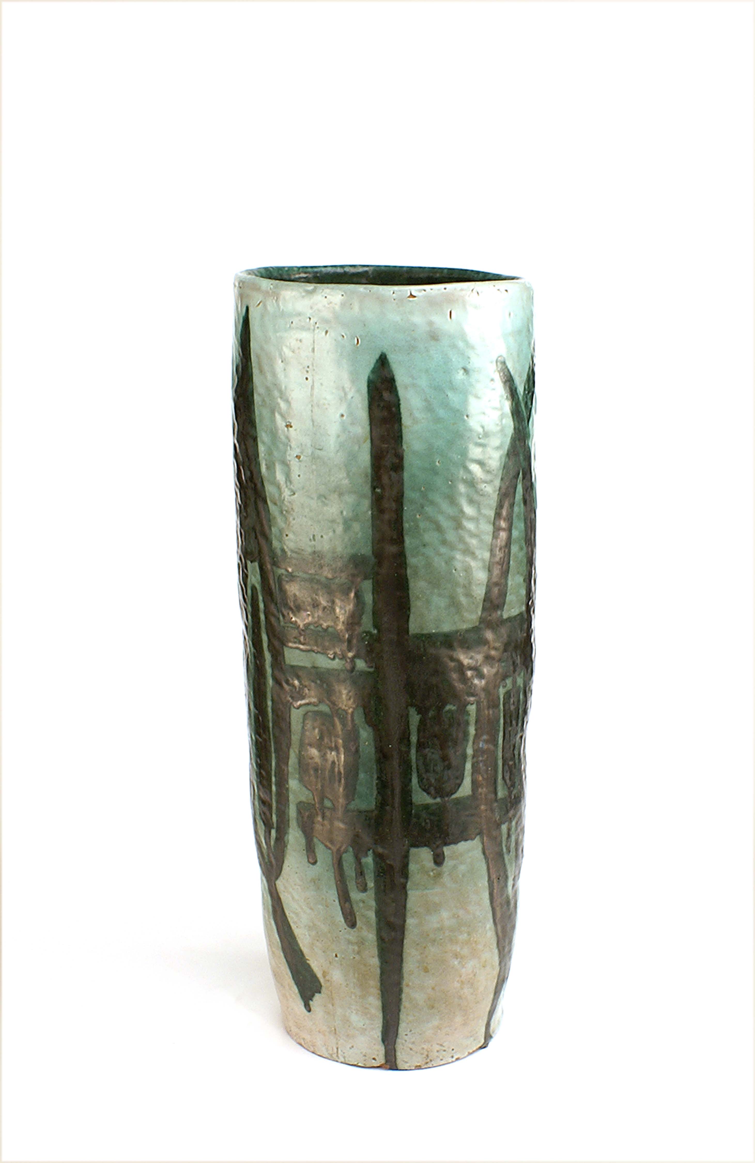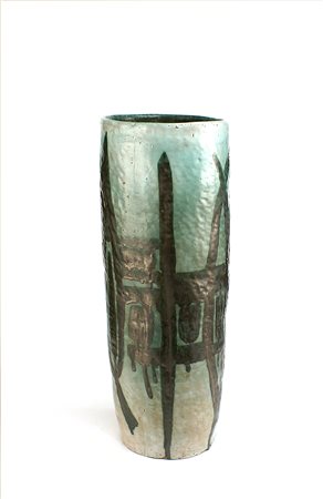 Salvatore Meli (Comiso 1929 - Roma 2011), vaso in ceramica a smalto verde, 1970 circa, opera non firmata, h. cm. 60, d. cm. 23.