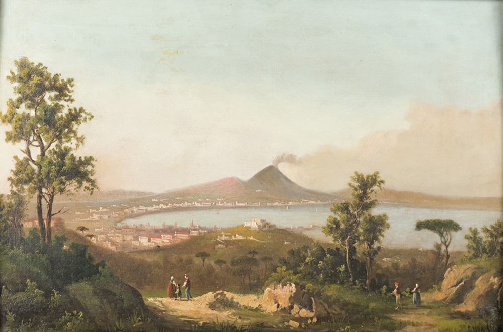Veduta del Golfo di Napoli con Vesuvio, olio su tela. Misure: cm 37x46