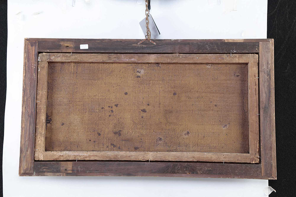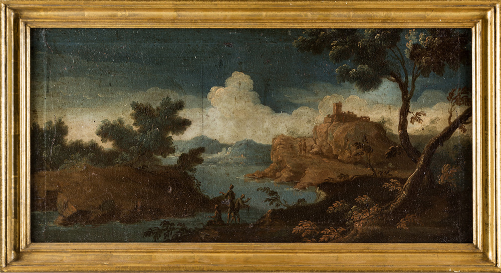 Paesaggio Fluviale con Figure olio su tela cm 35x75