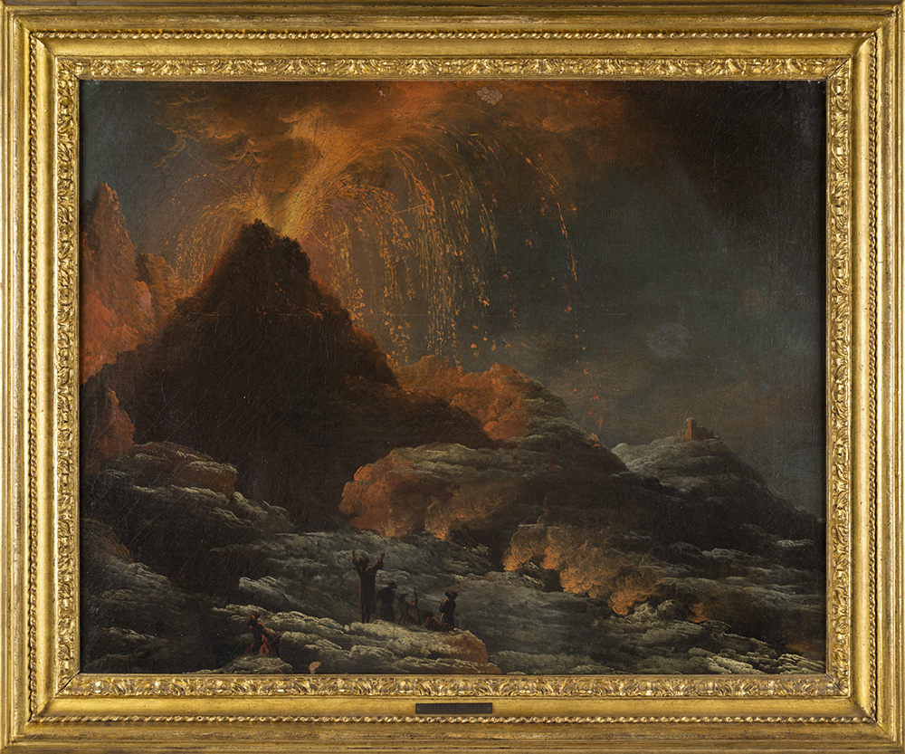 Vulcano in eruzione in un paesaggio invernale, olio su tela, pubblicato in...