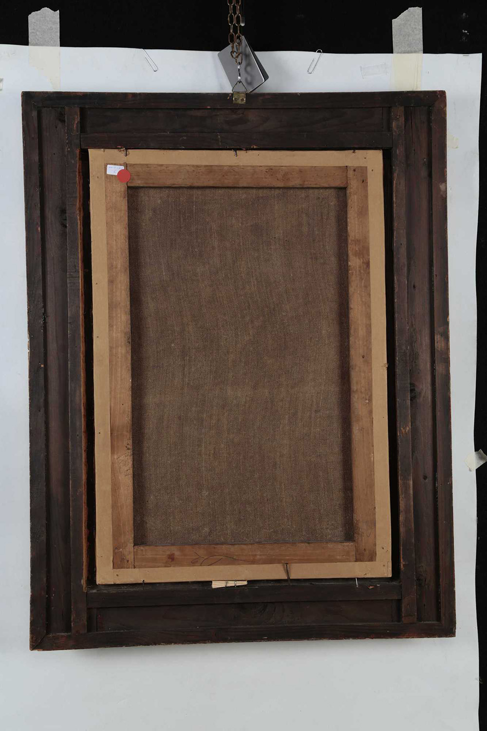 Lot 122 | Paesaggio boschivo con personaggi, olio su tela, cm 68x48