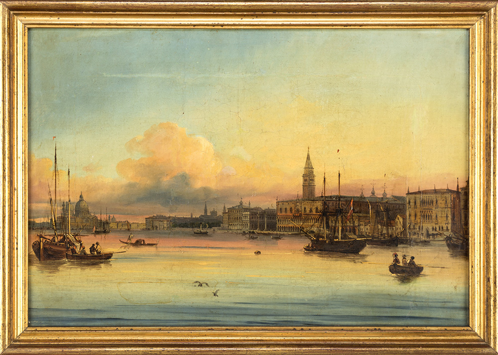 Il bacino di San Marco con il campanile e Santa Maria della Salute, Il bacino di San marco verso ovest con il Molo e il Palazzo Ducale olio su tela, 31x46 cm