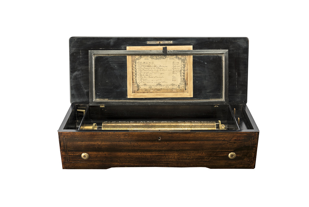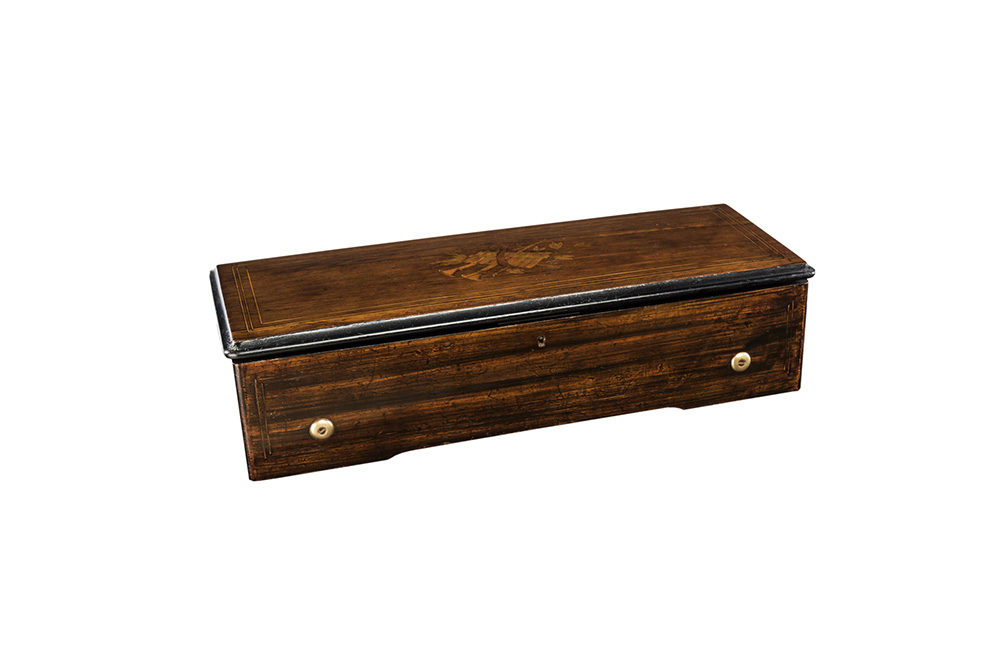 A partire dal 1814, la società di Nicole Frères si distinse per la produzione di carillon di di grande qualità. Il carillon musicale messo all'incanto dispone di 12 aree musicali, indicate nell’etichetta originale dell’epoca. La cassa riporta degli intarsi in legni vari sulla parte superiore. cm 14x59x23