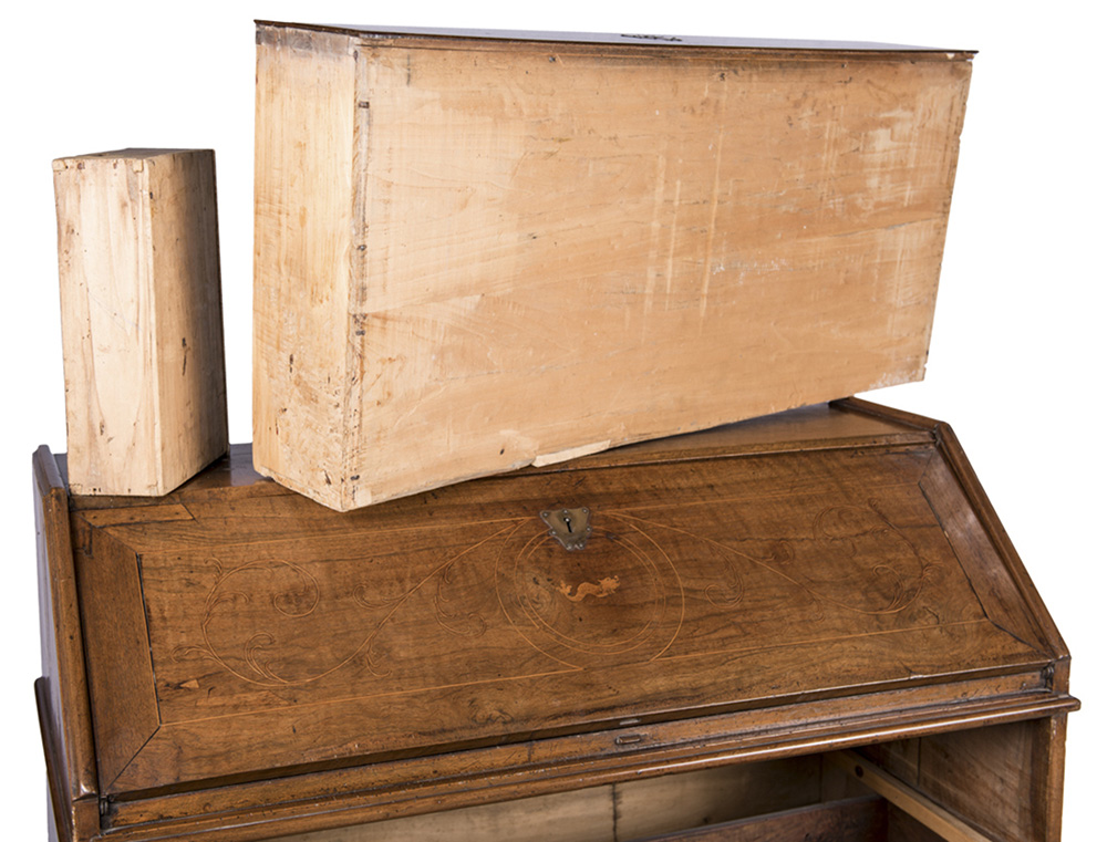 Ribalta in legno di noce filetto ornato in legno di ciliegio, scarabattolo a...