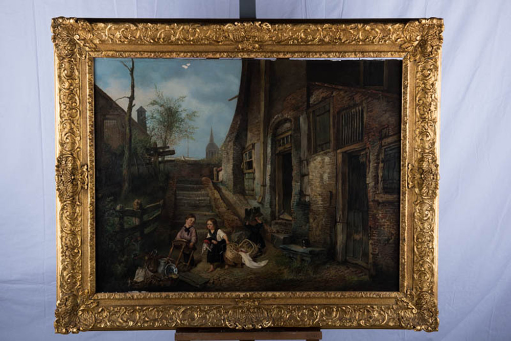 Il Trasloco olio su tela, firmato in basso a sinistra. Misure: cm 78x103