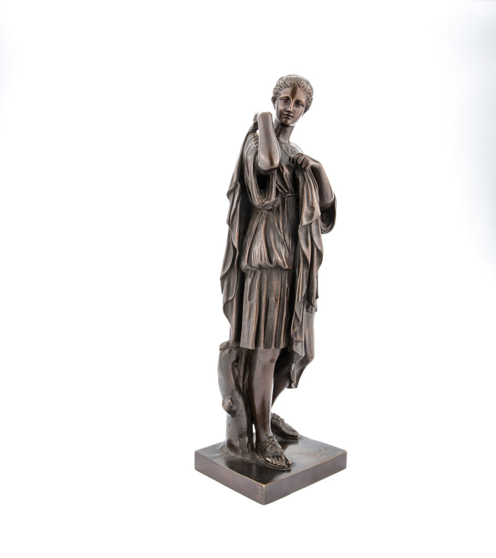 Scultura in bronzo raffigurante Vestale romana, periodo neoclassico, h. cm 43