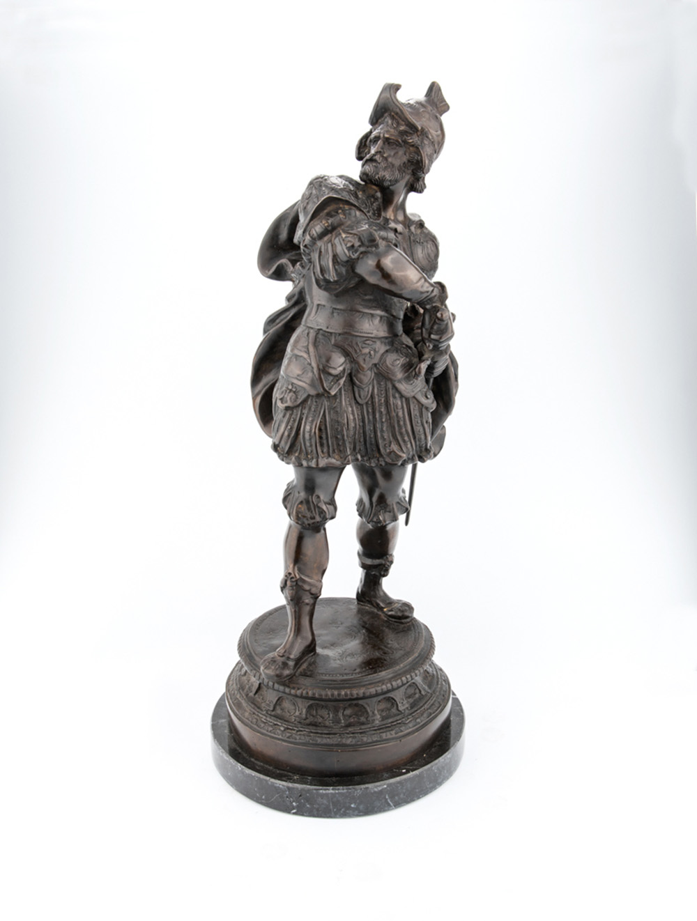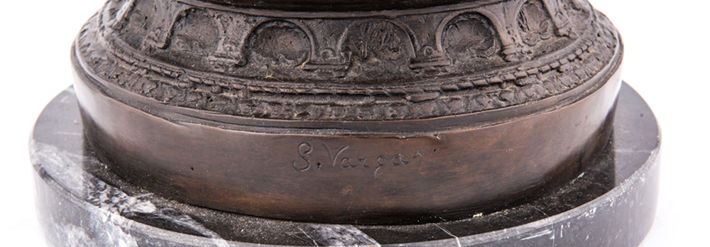 Scultura in bronzo Guerriero, base in marmo, h. cm 58 firmato S. Vargas