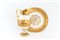 Brocca con vassoio in porcellana bianca con fitta decorazione in oro lucido e...