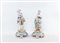 Coppia di figure in porcellana policroma raffiguranti due giovani in abiti...