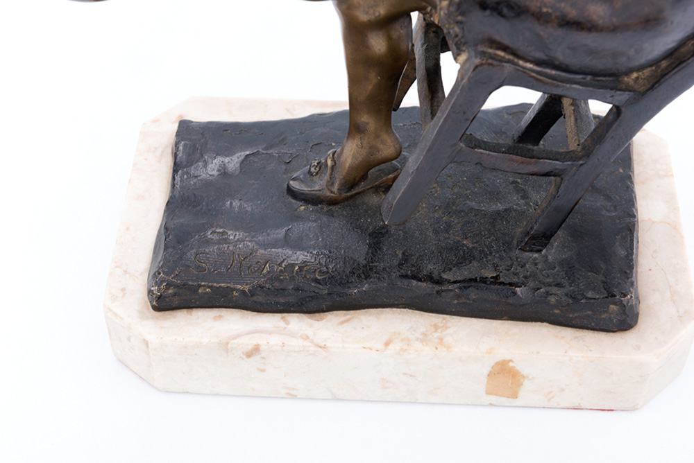 Scultura in bronzo brunito la Balia, Altezza cm 28 firmato sulla base S. Monaco