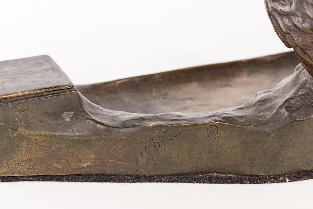 Calamaio in bronzo con tre Aquilotti cm 20x40x16 firmato sul retro Mortl