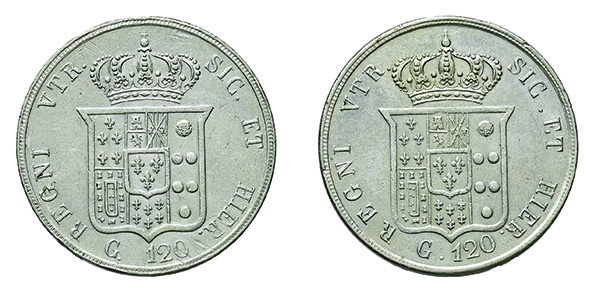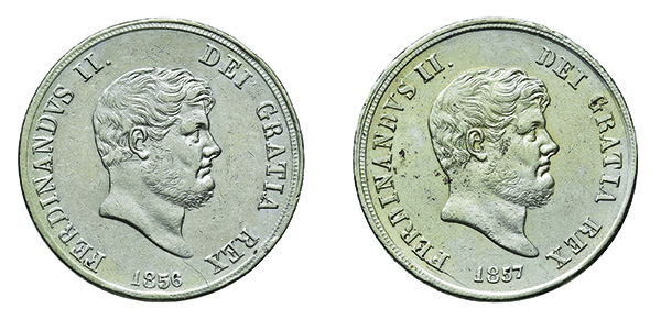 NAPOLI. Ferdinando II di Borbone (1830-1859). Piastra 1856 e 1857. AG. Migliori di BB