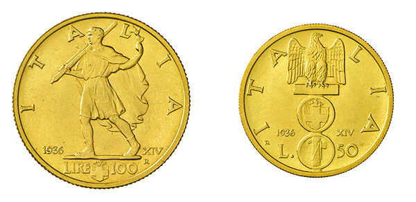 Lot 39 | REGNO D'ITALIA. Vittorio Emanuele III (1900-1946). 100 e 50 lire 1936. Pagani...