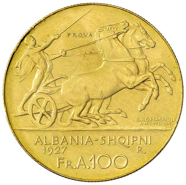 ALBANIA. Hamet Zogu. 100 Franchi 1927 Prova, Roma. Oro. Rarissima. Sigillata...