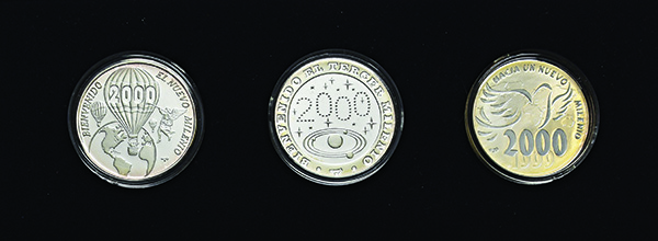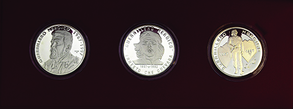 CUBA. Repubblica. Lotto di due cofanetti, ciascuno con tre monete da 10 pesos, 1997 (Guevara) e 2000 (Benvenuto Nuovo Millenio). Proof