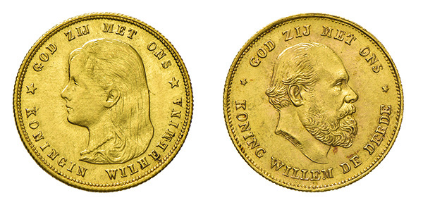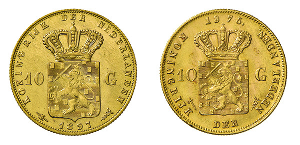 OLANDA Lotto di due monete da 10 gulden in oro (1875 e 1897) SPL