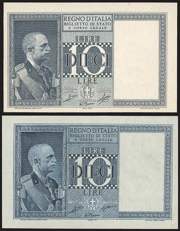 BANCONOTE. 10 lire "Imperiale" 1938 e 1944. Lotto di due banconote. SPL/FDS