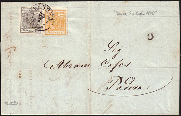 [LOMBARDO-VENETO] 1850 (23 lug.) Lettera da Verona per Padova con...