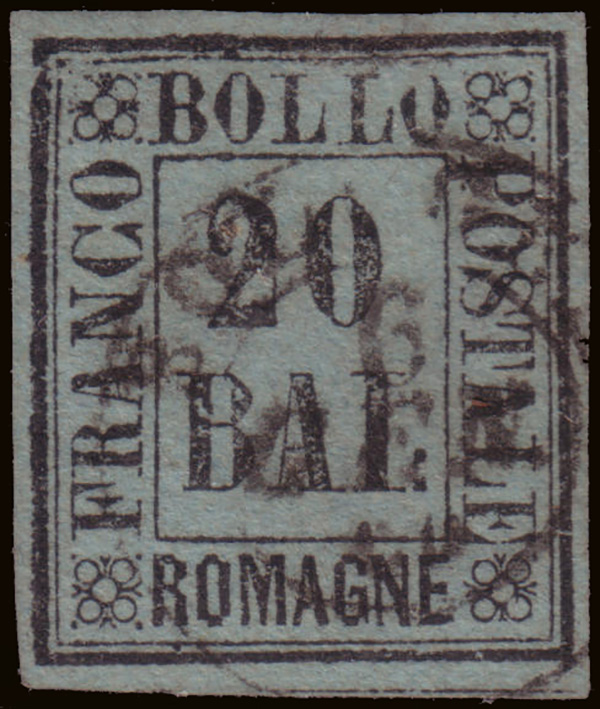 [ROMAGNE] 1859 20b. grigio azzurro. Cert. A. Diena Used..........(Sass. 9)