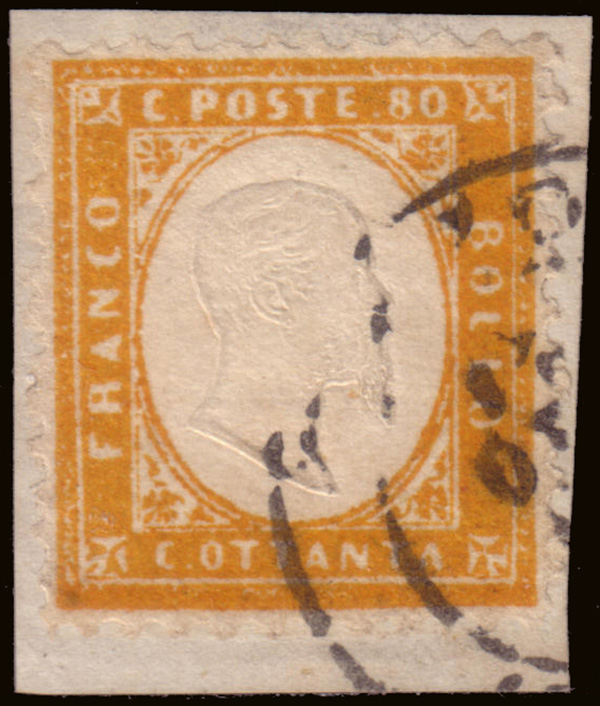 [REGNO D'ITALIA] 1862 80c. giallo arancio su piccolo frammento di lettera....