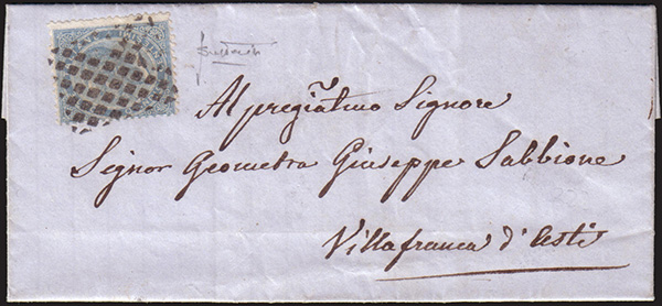 [REGNO D'ITALIA] 1864 (21 apr.) Lettera con testo da Torino per Villafranca...