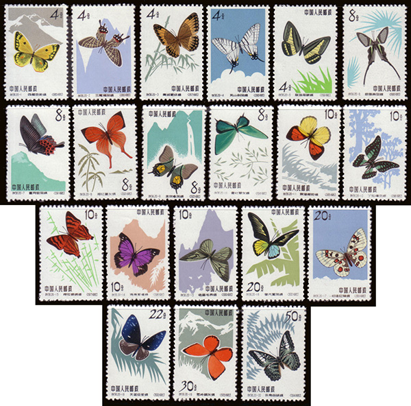 Lot 200 | [CINA] 1963 "Farfalle", serie completa di 20 valori. Da esaminare....